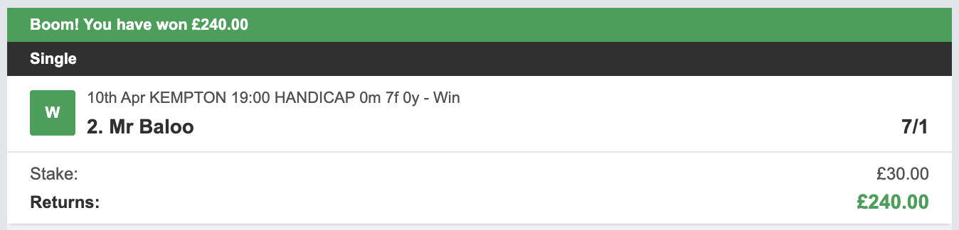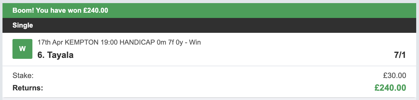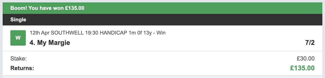 Not a bunch of low priced, favourite win slections!